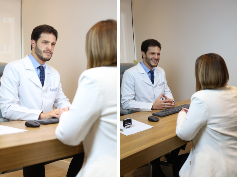 A primeira consulta dura cerca de 90 minutos, incluindo exame clínico e interpretação de exames pré-existentes.